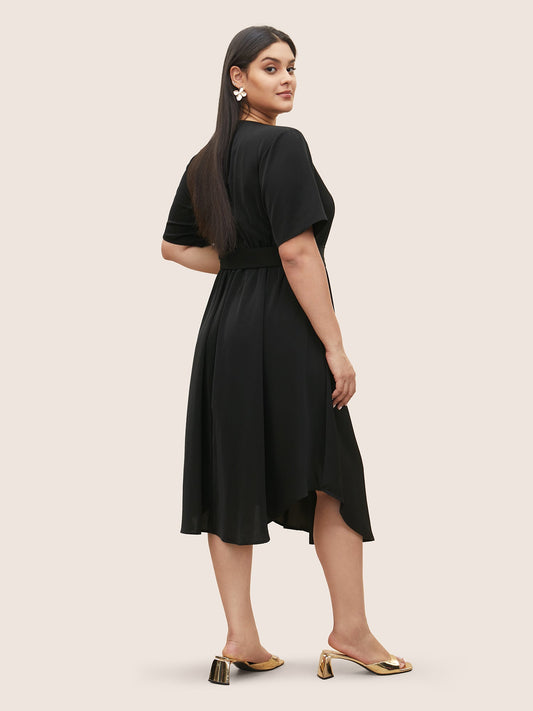 Anti-Wrinkle Metal Chain Detail Belted Arc Hem Dress