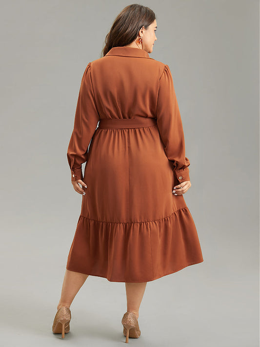 Anti-Wrinkle Patchwork Button Up Belted Dress