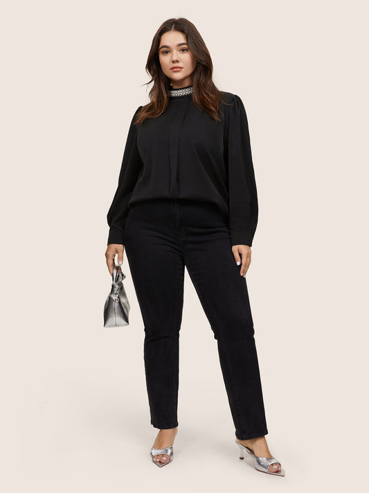 Anti-Wrinkle Pearl Beaded Contrast Webbing Blouse