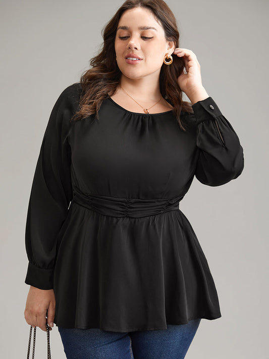 Anti-Wrinkle Plain Ruched Elastic Waist Blouse