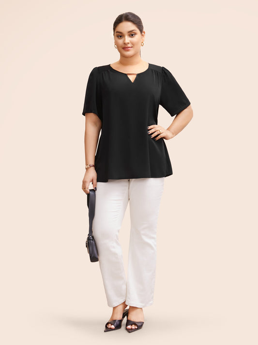 Anti-Wrinkle Plain Metal Detail Keyhole Neck Blouse