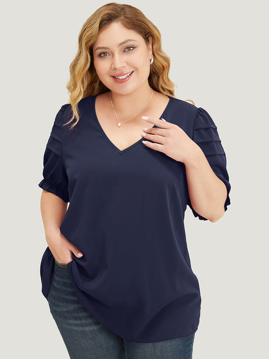 Anti-Wrinkle Plain Pleated Wrap Split Ruffles Blouse