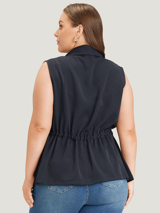 Anti-Wrinkle Plain Pocket Drawstring Lapel Collar Vest