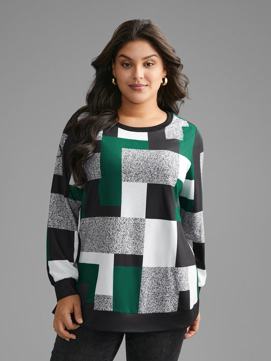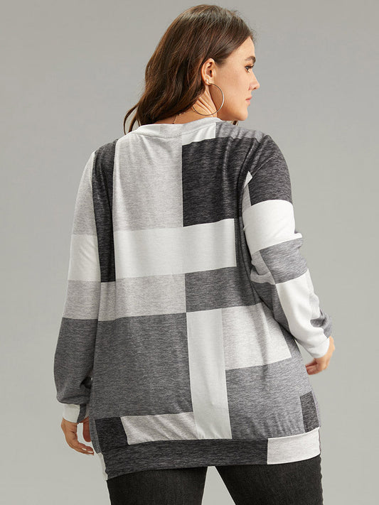 Asymmetrical Colorblock Contrast Crew Neck Sweatshirt