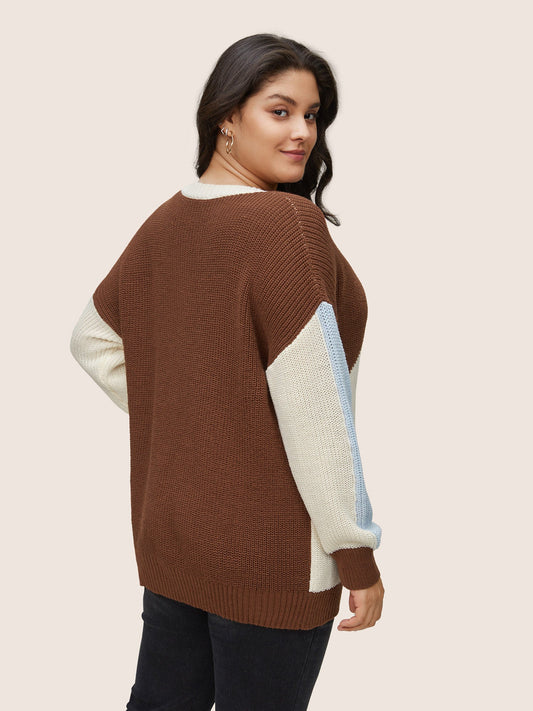 Asymmetrical Colorblock Contrast Drop Shoulder Pullover