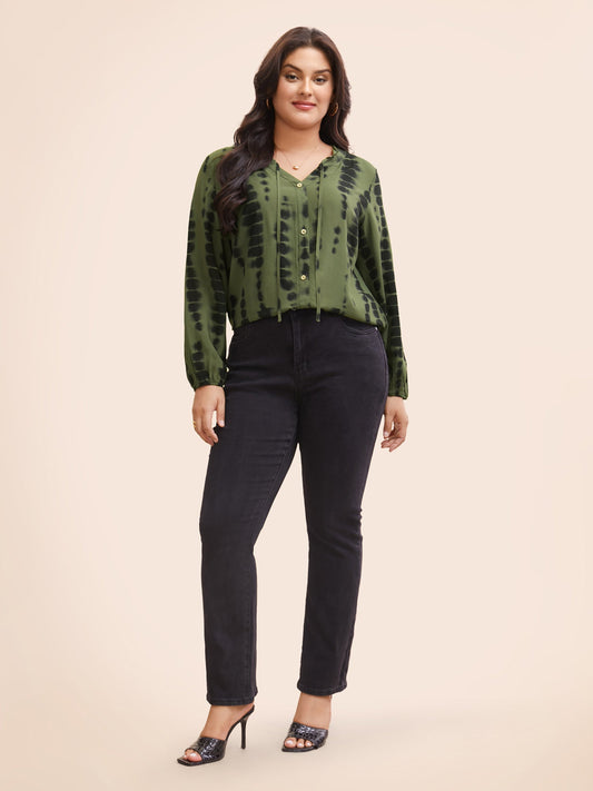Asymmetrical Brush Print Tie Knot Ruffles Blouse