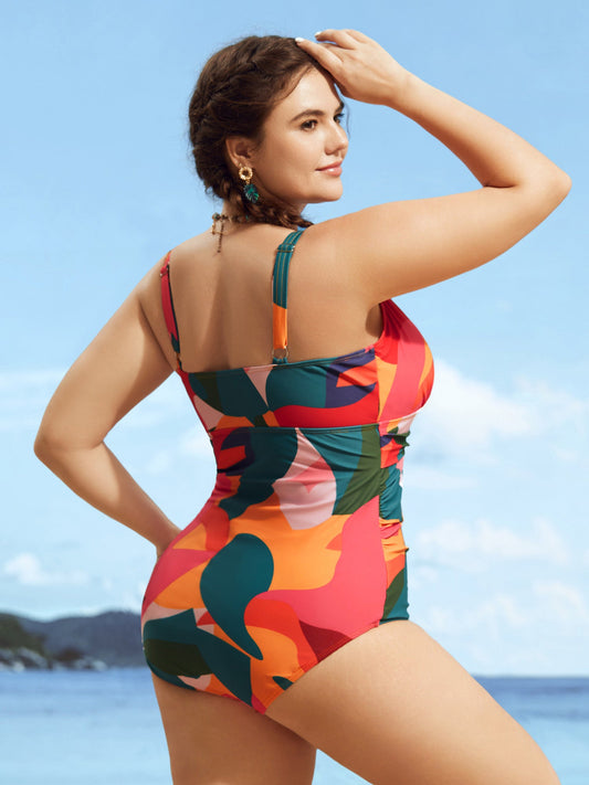 Asymmetrical Colorblock Contrast Ties One Piece Swimsuit