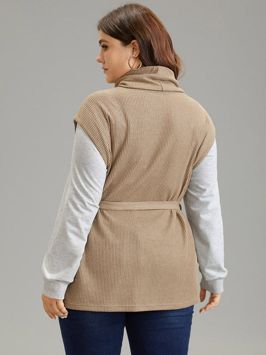 2-In-1 Turtleneck Texture Patchwork Belted Sweatshirt