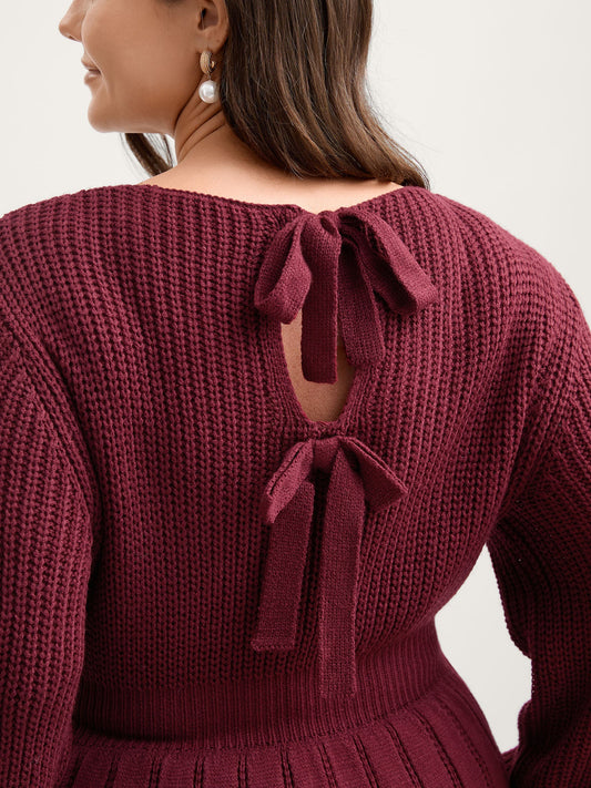 Backless Ties Textured Cinched Pullover