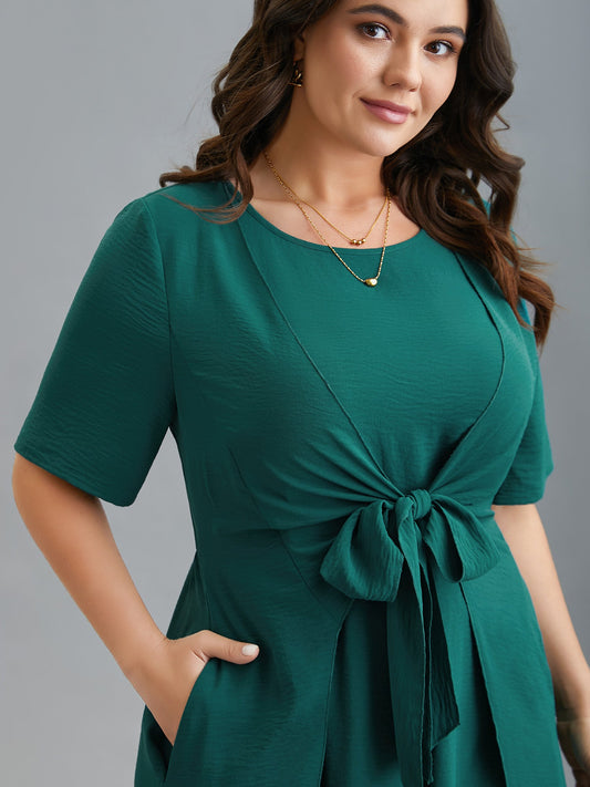 2-in-1 Waist-Tie Pockets Fit & Flare Dress