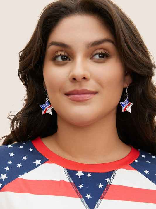 2Pairs Star & Heart USA Flag Color Drop Earrings Sst