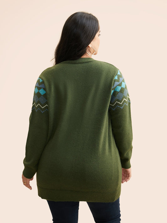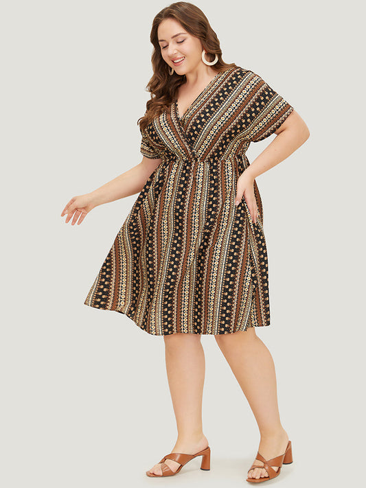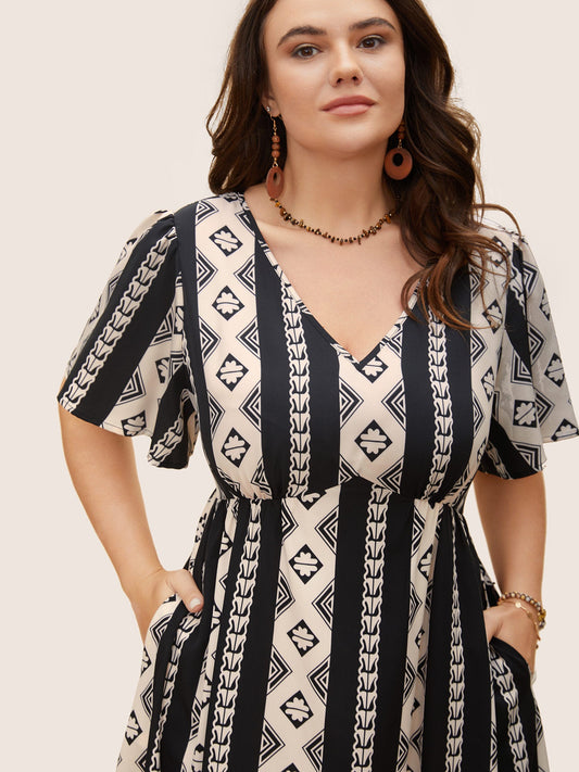 Bandana Geometric Flutter Pocket Batwing Sleeve Wrap Knee Dress