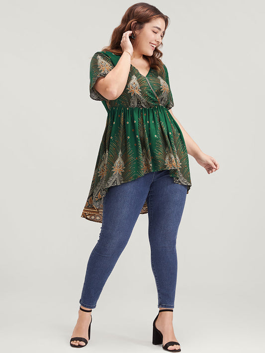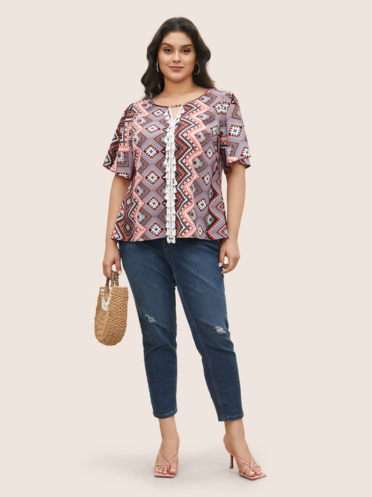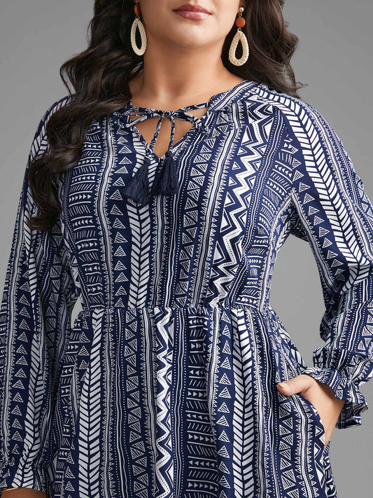 Bandana Keyhole Ruffle Sleeve Midi Dress