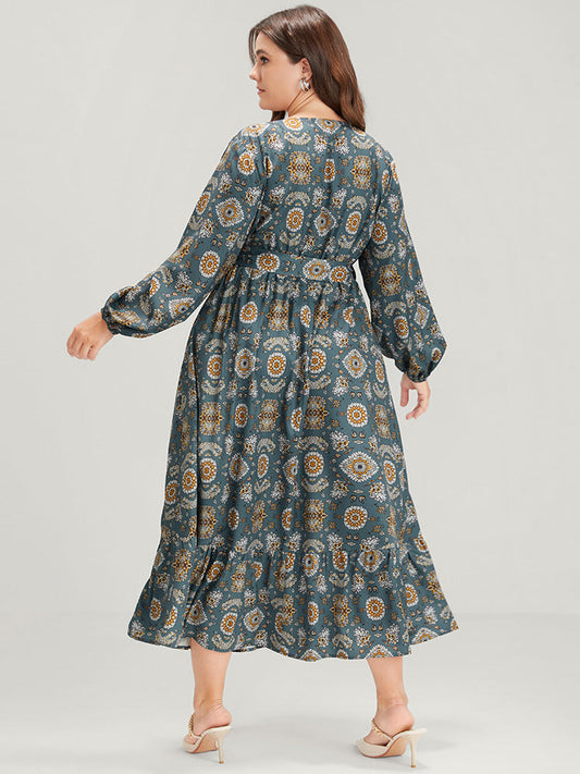 Bandana Lantern Sleeve Ruffle Hem Dress