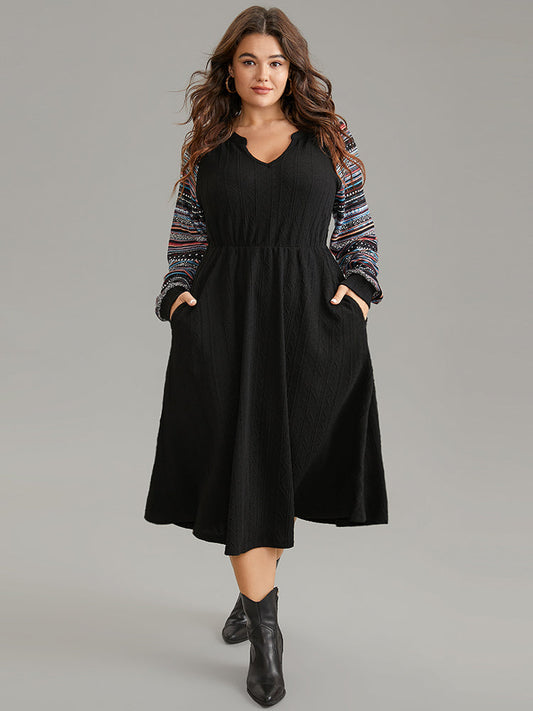 Bandana Patchwork Elastic Waist Notched Dress