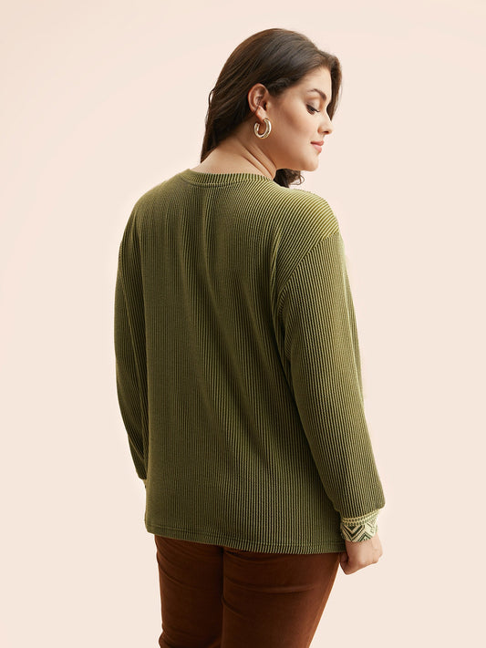 Bandana Patchwork Crew Neck Elastic Cuffs Sweatshirt