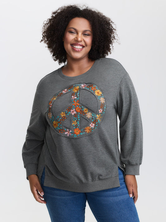 Sunflower & Sun Print Arc Hem Notched Raglan Sleeve Dress
