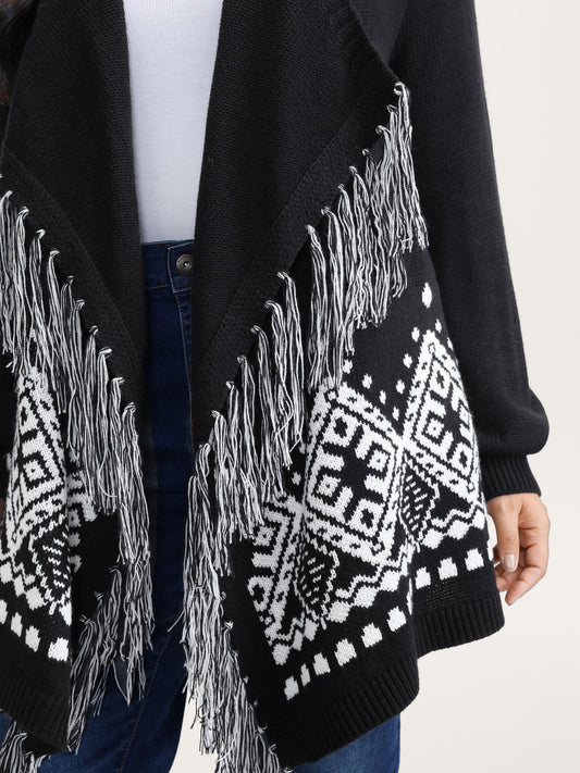 Retro Floral Jacquard Lantern Sleeve Cardigan