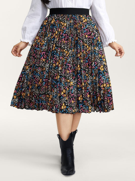 Floral Print Adjustable Drawstring Waist Midi Dress
