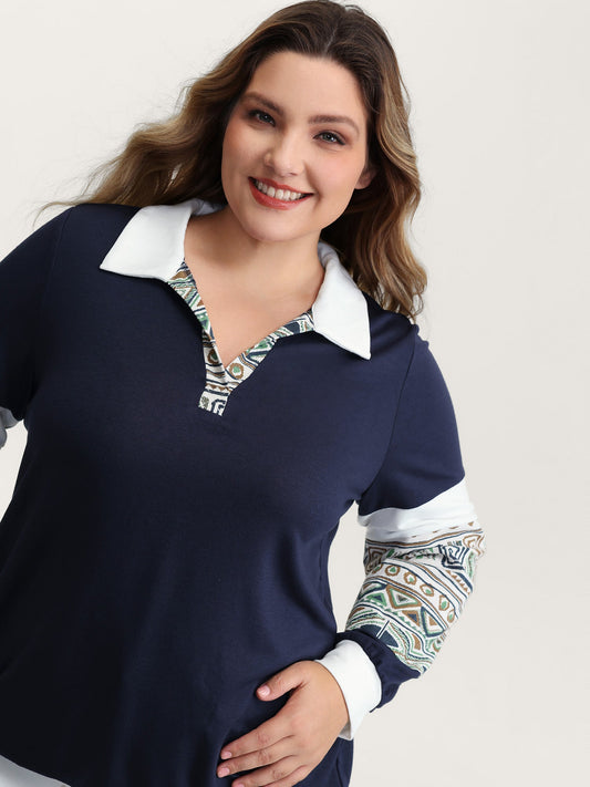 Eyelet Trim Overlap Ruffled Hem T-Shirt