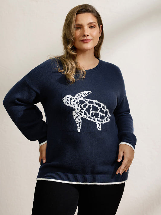 Turtle Motif Slit Contrast Edge Pullover