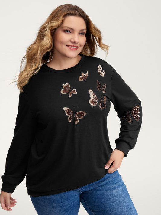 Butterfly Sequin Embroidery Relaxed-Fit Sweatshirt