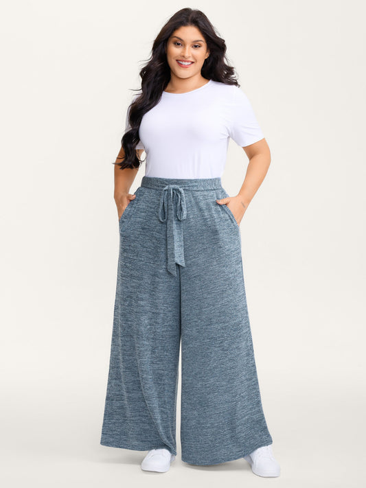 Stretchy Mixed-Color Belted Wide-Leg Pants