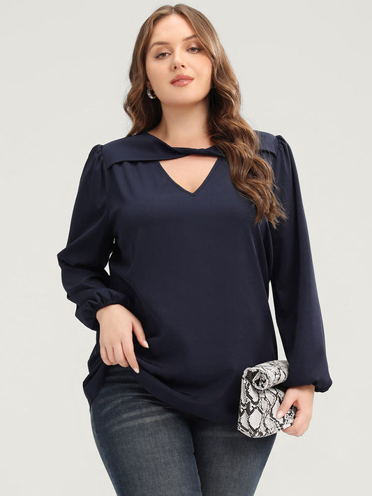 Solid Lantern Sleeve Pocket Mock Neck Contrast Lace Dress