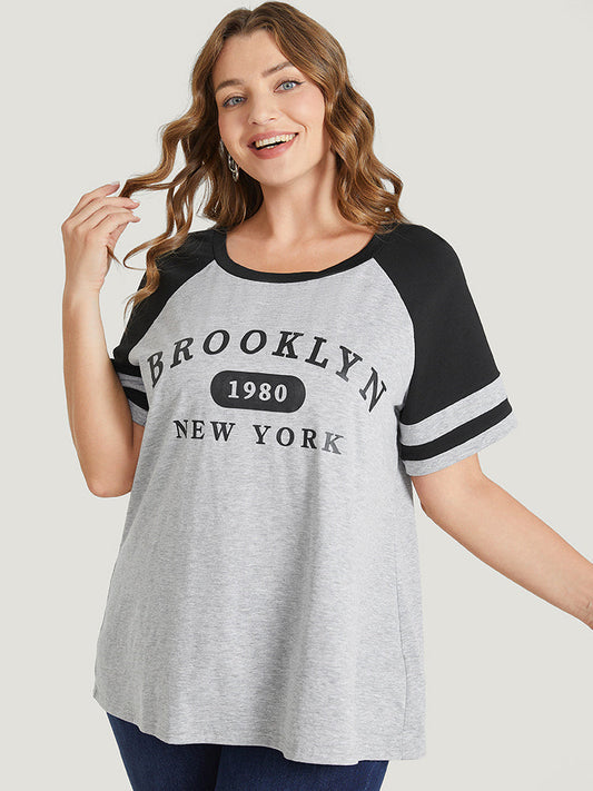 Letter Print Contrast Raglan Sleeve Graphic Tee