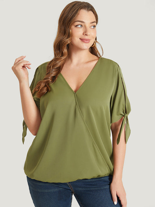 Plain Wrap Cut Out Knot Sleeve Blouse