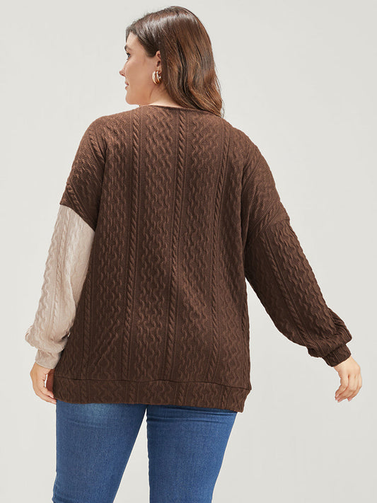 Solid Cable Knit Surplice Neck Drop Shoulder Sweatshirt