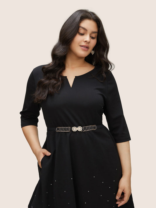 Pearl Beaded Metal Buckle Detail Elastic Belt