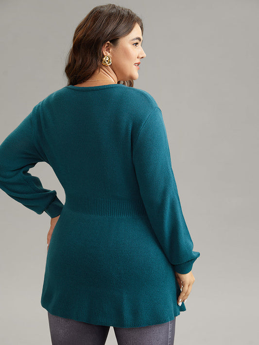 Supersoft Essentials Plain Hollow Out Puff Sleeve Pullover