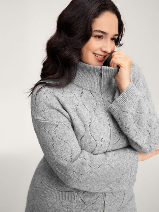 Leopard Print Arc Hem Pockets Knit Cardigan
