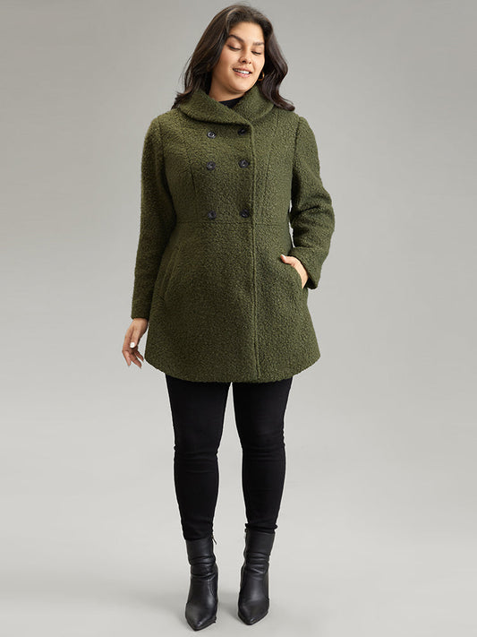 Fluffy Asymmetrical Neck Double Breasted Coat