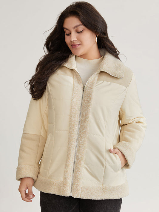 Fuzzy Trim Patchwork Zipper Padded Jacket