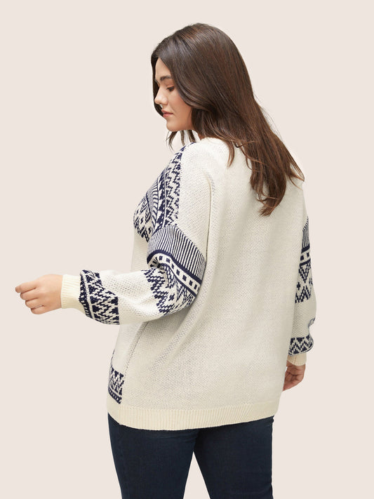 Geometric Jacquard Drop Shoulder Pullover