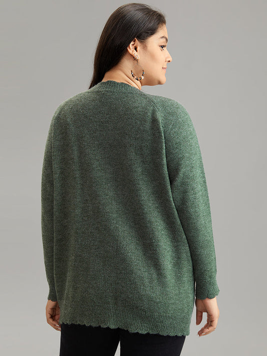 Solid Cable Knit Scalloped Trim Cardigan