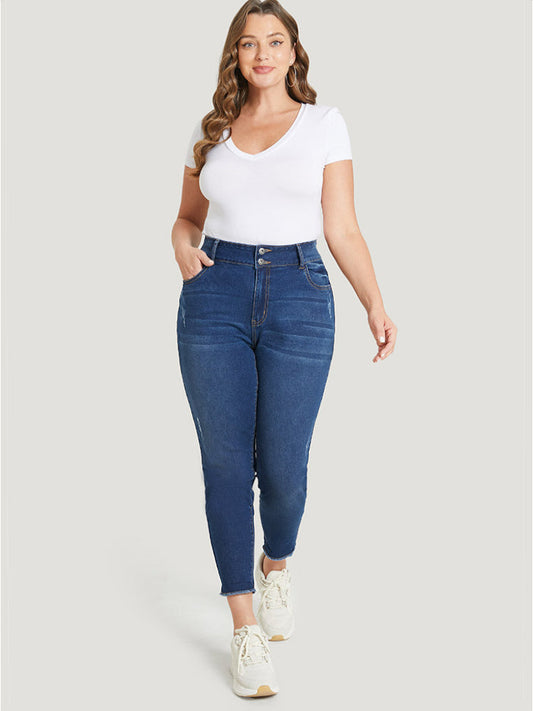Very Stretchy High Rise Distressed Detail Raw Hem Jeans