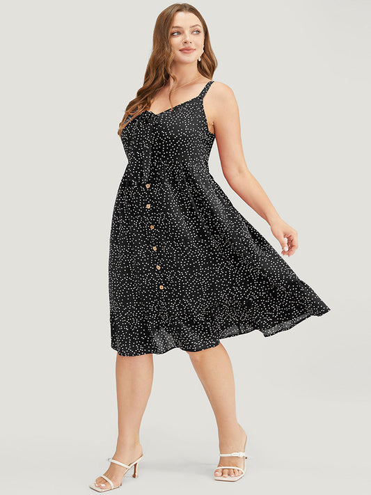 Polka Dot Button Detail Knotted Pocket Cami Dress