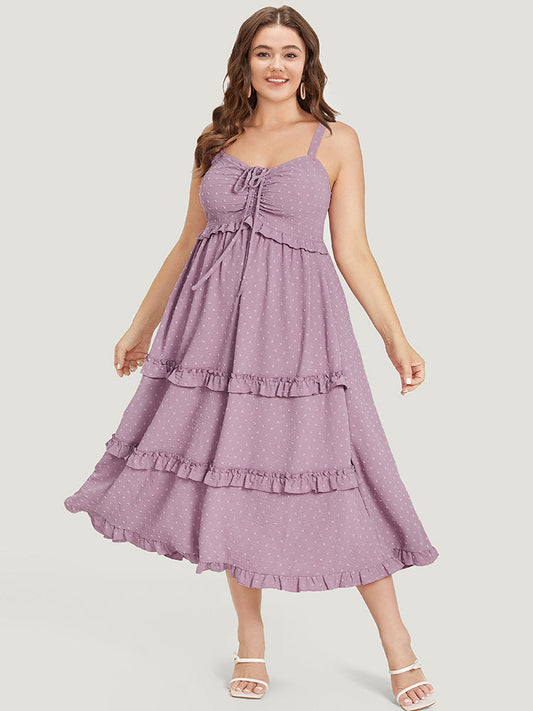 Plain Drawstring Ruched Pocket Ruffle Trim Cami Dress