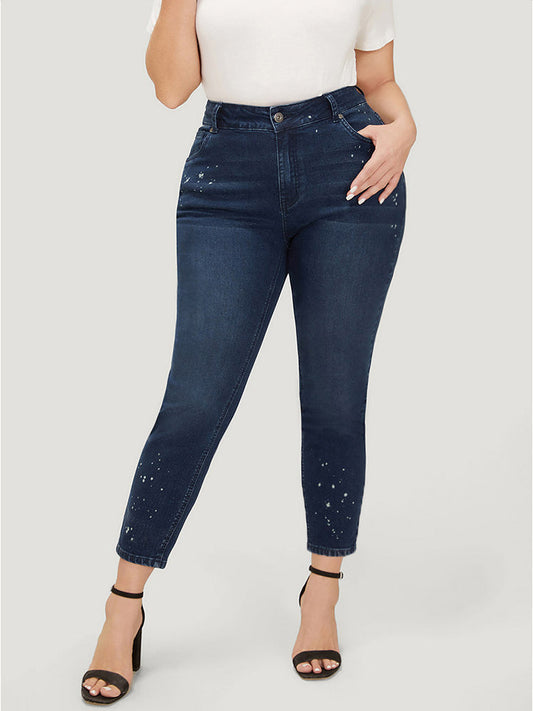 Very Stretchy High Rise Dark Wash Paint Jeans