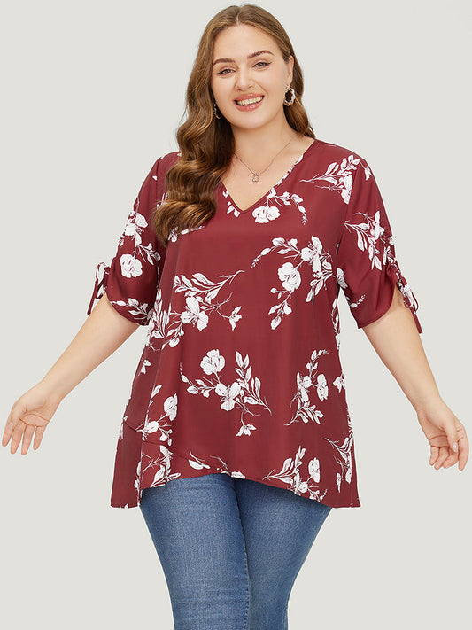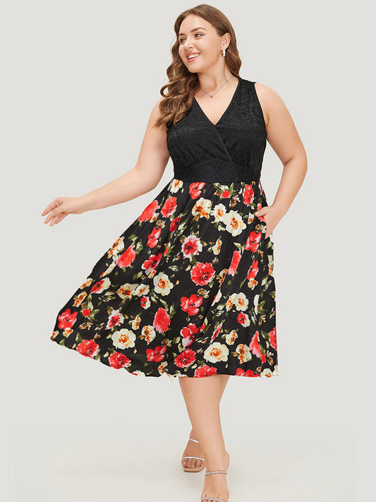 Ditsy Floral & Polka Dot Lace Notched Neck Blouse