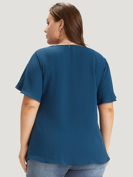 Plain Crisscross V Neck Short Sleeve T-shirt