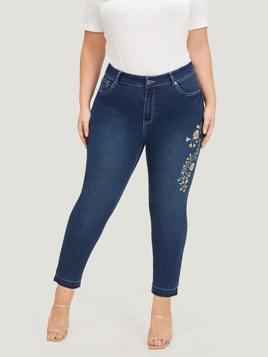 Very Stretchy Floral Embroidered Dark Wash Jeans