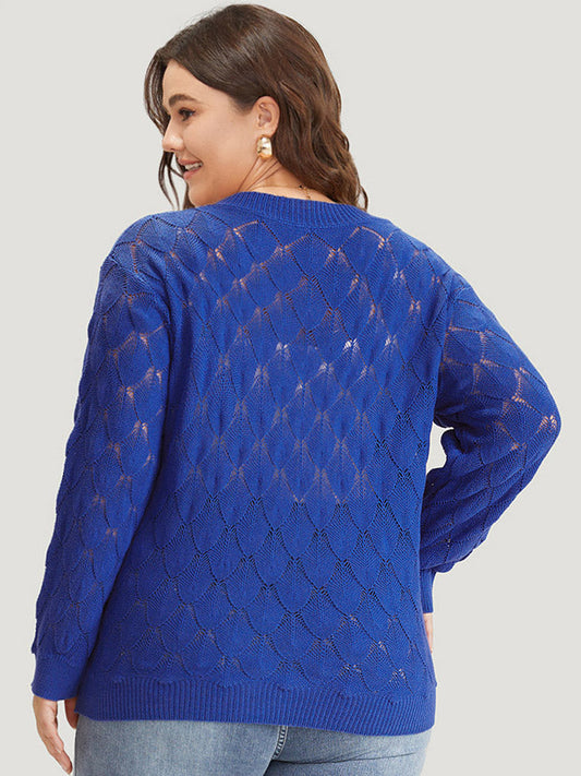 Plain Geometric Eyelet Elastic Cuffs Moderately Stretchy Pullover