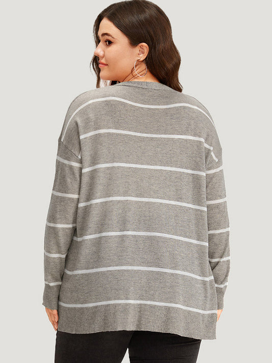 Supersoft Essentials Striped Button Through Elastic Cuffs Cardigan