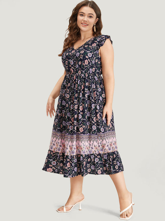 Bandana Print Contrast Ruffle Cap Sleeve Pocket Dress