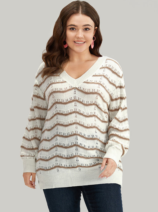 Wave Striped Cut Out V Neck Cardigan