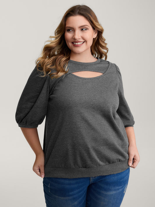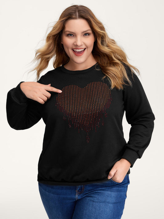 Heart Motif Rhinestones Round Neck Sweatshirt